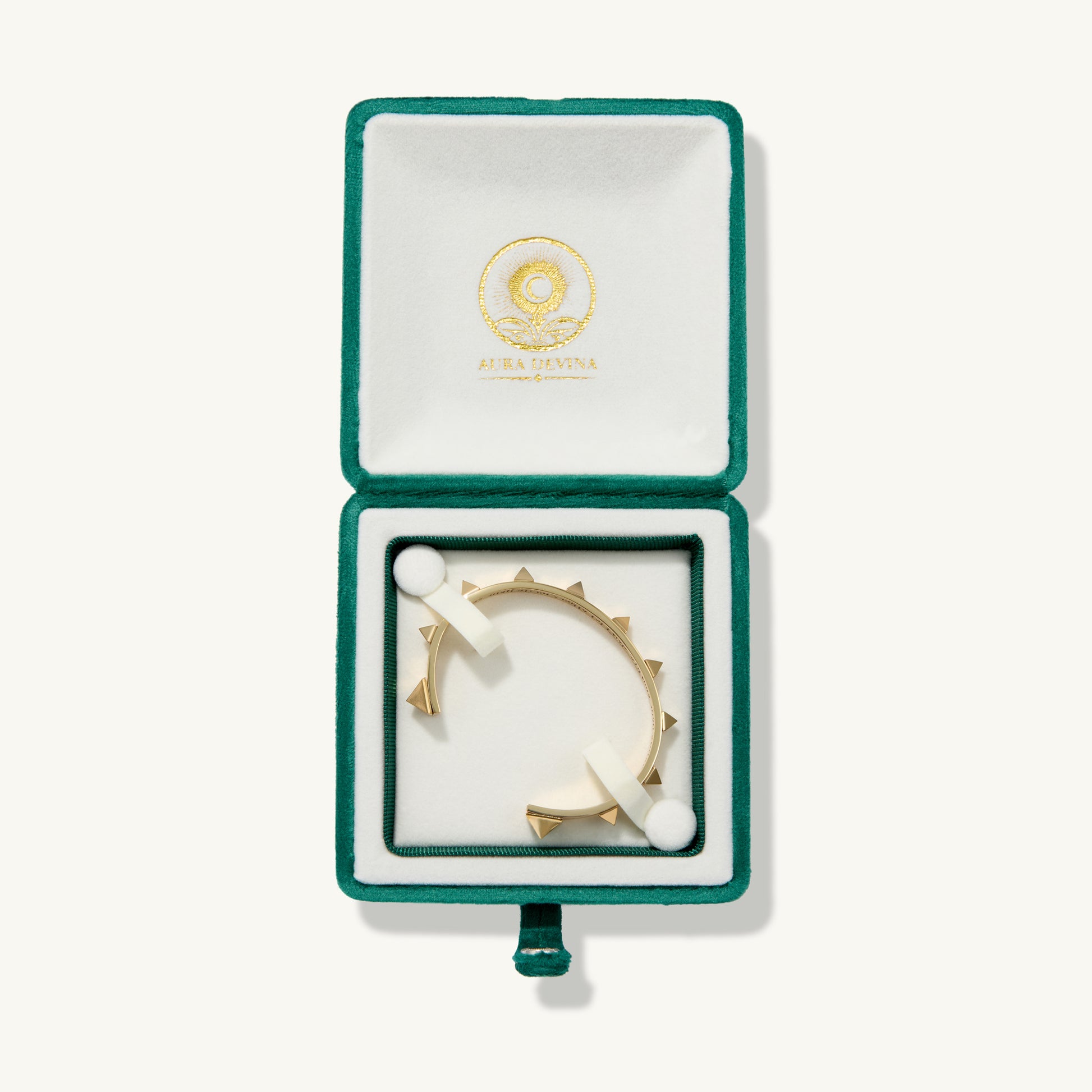 More than just a beautiful piece of jewelry, the Aspiration Bracelet is a gentle reminder to reconnect with your inner self. It helps center your mind and heart, grounding you in mindfulness and reflection. The pyramid accents represent your inner strength, while the engraved words offer guidance when you need it most.